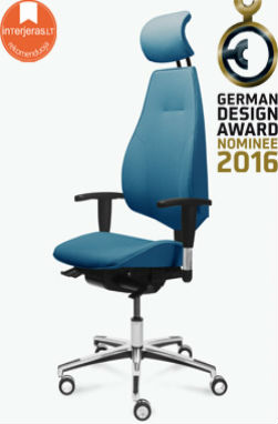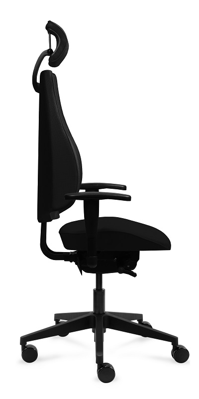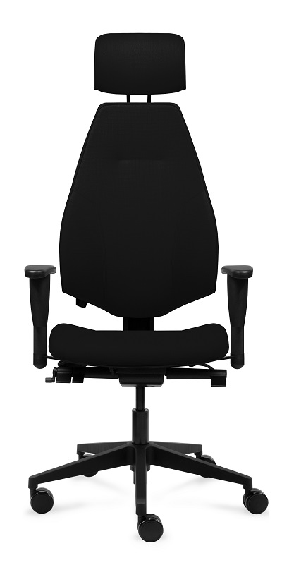 Darba krēsls ar "anti-shock" sinhrono mehānismu, 5 fiksēšanas pozīcijas. Ergonomiski veidots sēdeklis un atzveltne. Regulējams atzveltnes augstums, sēdekļa dziļums, jostas vietas atbalsts. Regulējams galvas balsts. 3D regulējami roku balsti. Izturīga melna plastmasas vai pulēta alumīnija kāja ar pašbremzējošiem gumijotiem ritentiņiem.