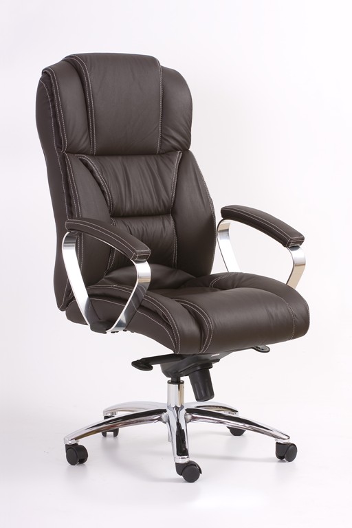 Vadītāja krēsls ar "multi-lock" mehānismu, regulējams sēdekļa augstums, pulēta alumīnija kāja ar mīkstiem ritentiņiem, polsterēti roku balsti, krāsas - melna, tumši brūna, bēša āda