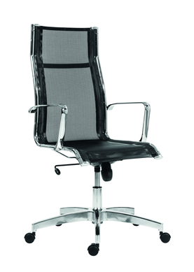 Darba krēsls ar šūpošanās vai "multi-block" mehānismu; 3 veidu apdare - melns vai balts sietiņa audums, rievota āda vai eko āda, polsterēta āda vai eko āda; fiksēti roku balsti; pulēta alumīnija kāja ar mīkstiem ritentiņiem; riteņu diametrs - 50 mm.